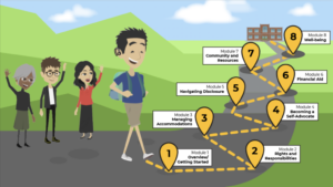 A free online course to help you get started in college or university, if you’re in high school or in your first year at college or university. Find support with services, rights and responsibilities, planning for finances or access needs etc. When you enrol in this course, you are automatically invited to work with a mentor to help you!